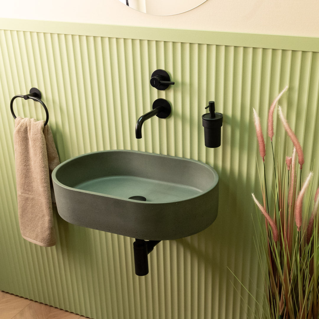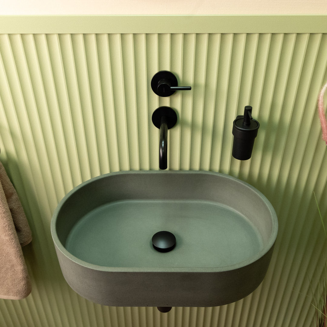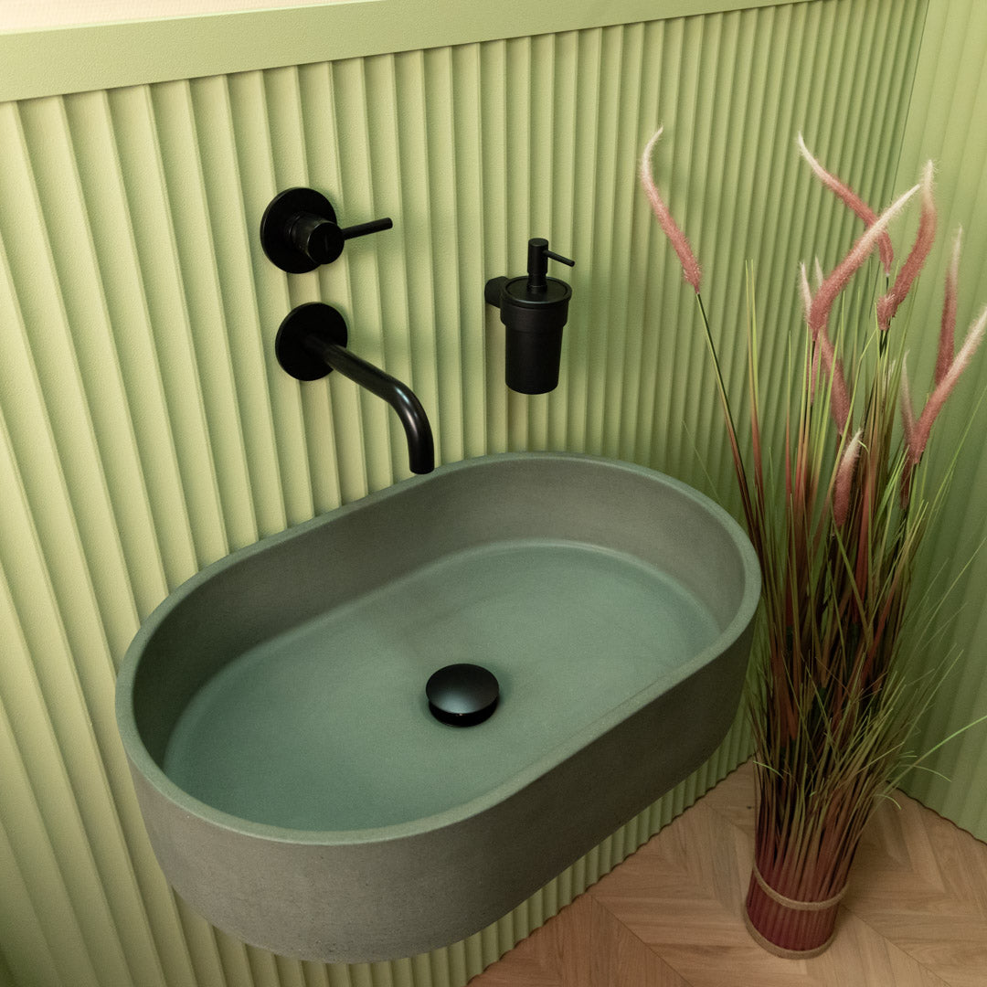 Handgefertigt aus hochleistungsfähigem GFRC (glasfaserverstärktem Beton) vereint dieses ovale Betonwaschbecken Langlebigkeit mit anspruchsvollem Design. Seine glatte, matte Oberfläche und organischen Kurven passen perfekt zu modernen und minimalistischen Innenräumen. Jedes Stück ist ein Unikat, mit subtilen Variationen in Farbton und Textur, die seinen handgefertigten Charakter widerspiegeln. Für eine einfache Montage auf der Arbeitsplatte konzipiert, ist es eine praktische und elegante Wahl für jedes Badezimmer.