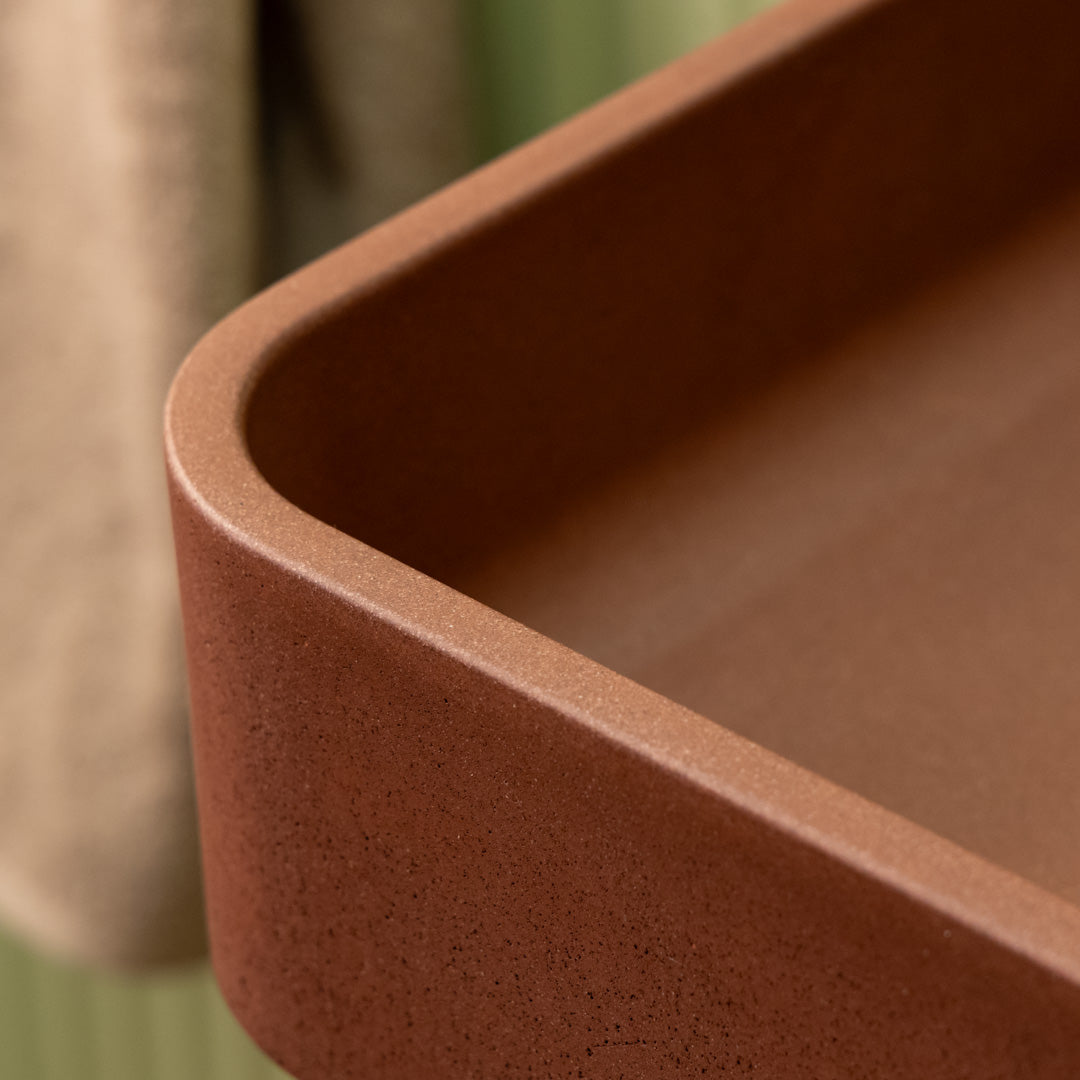Realizzato a mano con cemento di alta qualità, il Boxy Basin presenta un design quadrato pulito che aggiunge struttura e equilibrio ai bagni moderni. La sua finitura opaca liscia e le linee nette lo rendono perfetto per interni contemporanei o industriali. Ogni lavandino è unico, con sottili variazioni di tono e texture che ne evidenziano il carattere artigianale. Progettato per un'installazione facile sul piano del lavabo, offre sia durata che uno stile sobrio.